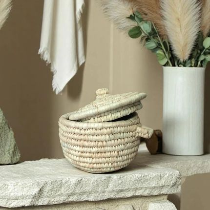 Wilery Straw Basket – Handwoven with Colorful Wool Accents -Sustainble
