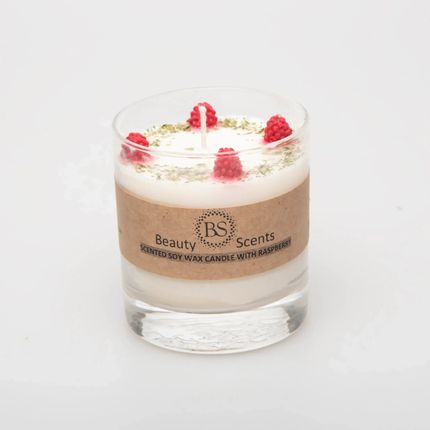 Large Candles with Raspberry in glass container, box of 6, Strawberry