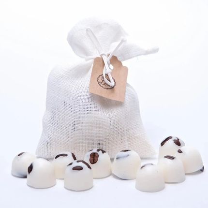 Scented Natural Wax Melts in Linen Bag of 10 each, Vanilla & Coffee, grey bag