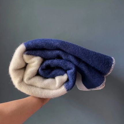 Wool blanket plaid, Tricolor Square Solid Blue