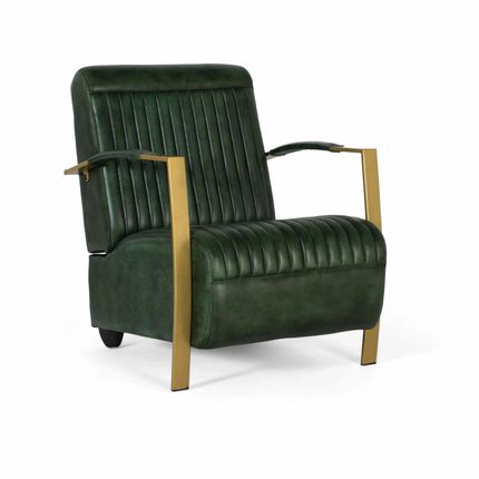 Armchair covered in natural leather with gold metal structure