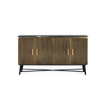 Sideboard with 4 wooden doors covered in bronze and marble top