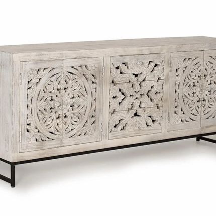 Mango wood sideboard and aged white metal legs