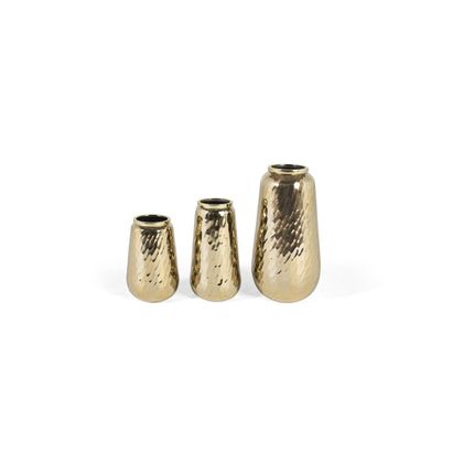 Set of three decorative gold metal vases