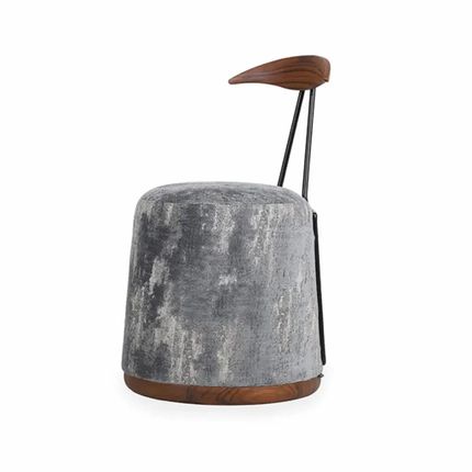 Credu - Teakwood Pouffe cum Chair With Green Textured Fabric