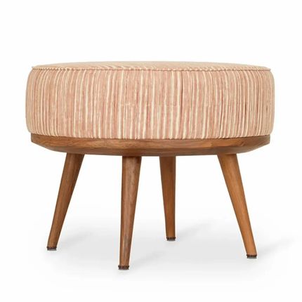 Zoya - Teakwood Round Ottoman with Orange Fabric