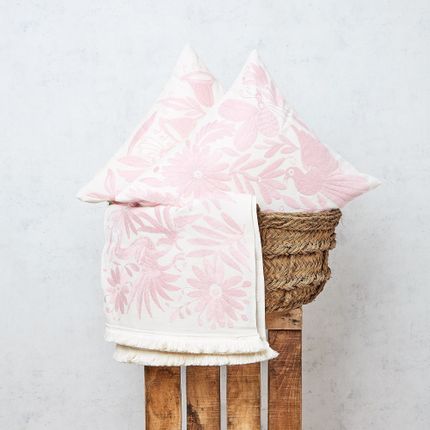 Pink Tenango Embroidered Bed Runner