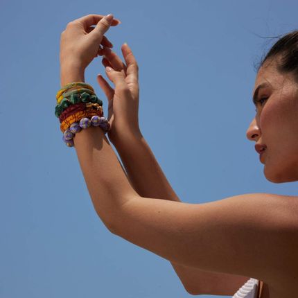 Upcycled fabric bracelets — macrame, charms & sari tassels