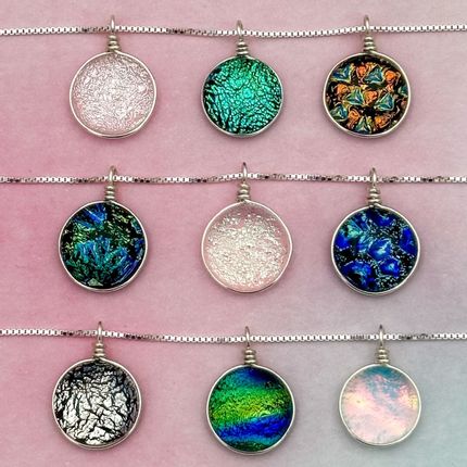 9 dichroic glass pendant necklaces