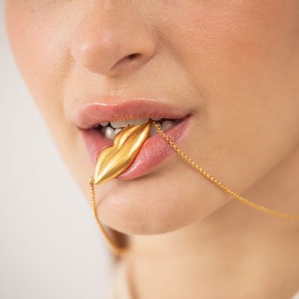 GOLDEN NECKLACE DALÍ, JEWELRY BY JOIDART, LIPS