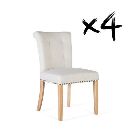 Set of 4 beige fabric and wood chairs