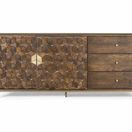 Sophisticated mango wood and metal sideboard in walnut and gold
