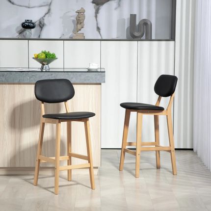Set of 2 neo-retro style bar stools in black synthetic wood