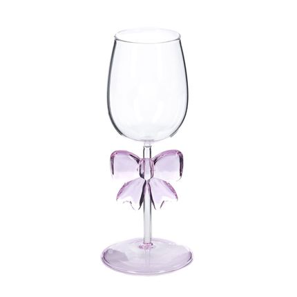 GLSS WINE GLASS W/BOW TT CLR/PNK 22,5CM