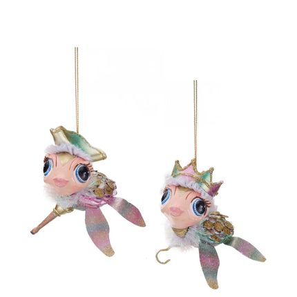 TREAS.PIRATE TURTLE ORN ASS/2 GLD/PNK/GRN 12CM