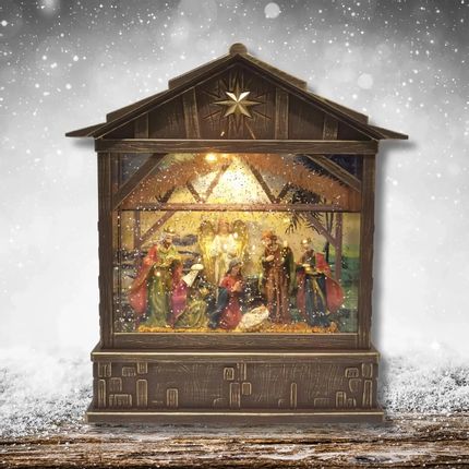 Nativity Scene Lantern with Warm LED, Glitter Effect & Timer Function