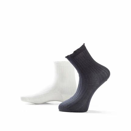 Socks - Trend, ruffles, low, cotton, 2 pairs, off-white/black, 37-41