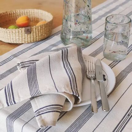 Handwoven Cotton Napkin | Tsiame Beige Blue Stripes