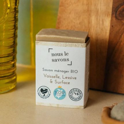 Solid organic household soap