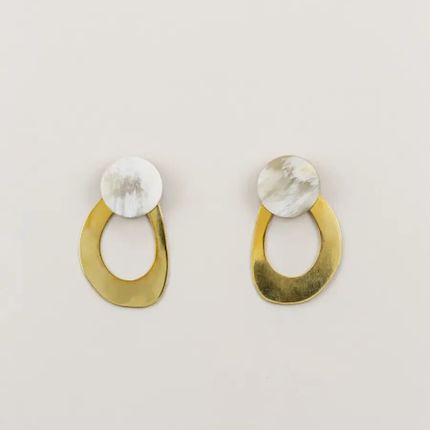2-part oval brass earrings with a horn pendant