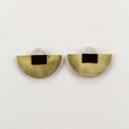 Stone & Brass Crescent earrings