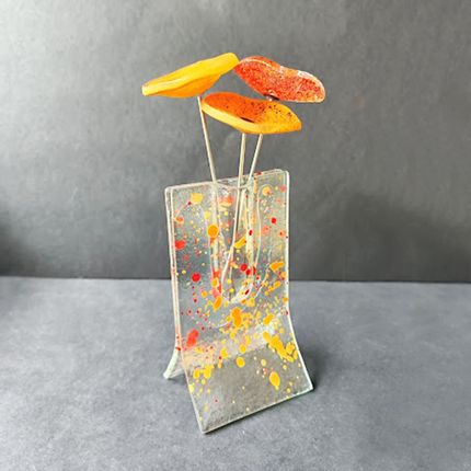 Small 8X13 Cm Spotty Vase With 3 Small Flowers In Orange-Red