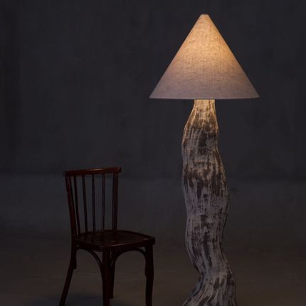 MA Floor Lamp – Handcrafted Sculptural Lighting with Linen Shade