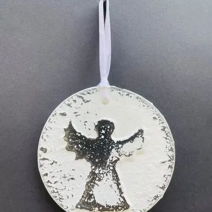Large white rustic Christmas hanger with angel