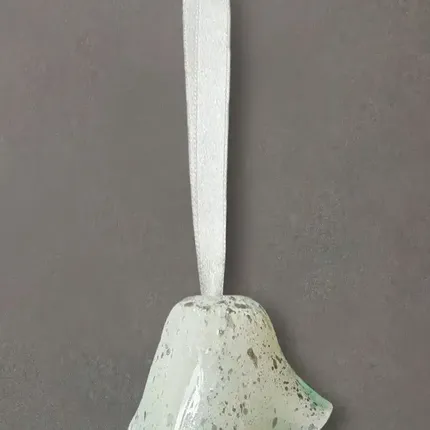 Large size glass bell on elegant ribbon hanger in white-silver colour