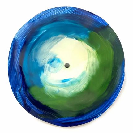Large size glass flower for outdoor use in dark blue-green colour with 1 meter stainless steel stem