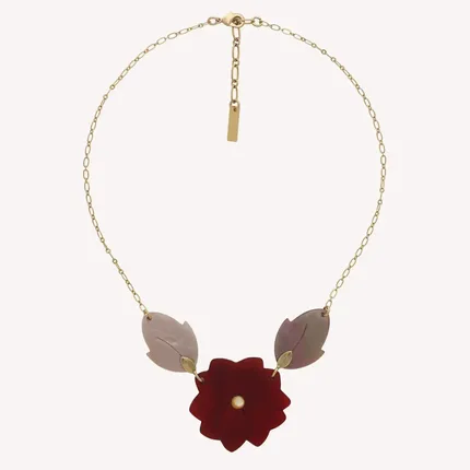 3 elements necklace with red flower & brownlip leaves - Son Jardin