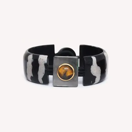 Articulated bracelet with button lock - Zebra