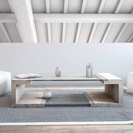 MANILA Coffee Table in Natural Travertine Marble and Glass