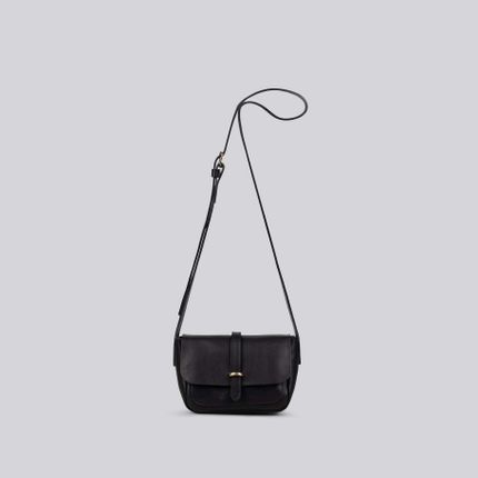 Jay - Small Leather Crossbody Bag in Grainy Black