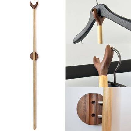 Luxury dressing room clothes pole to unhook, in wood (ash and walnut)