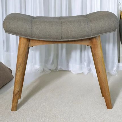 Artisan Furniture Solid Wood Curved Tweed Bench, Upholstered, Nordic Legs, Grey and Brown