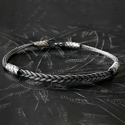 FINE BRAID BRACELET - SILVER AND OXIDIZED SILVER - HANDMADE - MEN & WOMEN