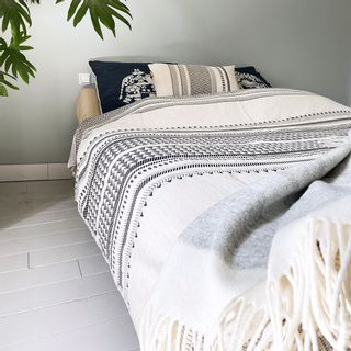 Planet Safari room decoration: cotton handwoven native offwhite throw, bark stripe throw