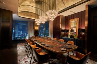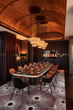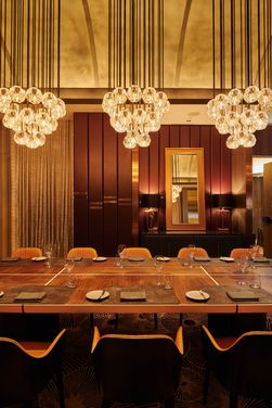 It does not reach the dizzying heights of other buildings in Singapore, but its location on the dock of Marina Bay gives it an incredible view of the most fashionable district of the city: OUE Bayfront is located in front of the petal-shaped structure of the ArtScience Museum and the iconic towers topped by the transatlantic liner of Marina Bay Sands, which years ago had travelled around the world. On its top floor, with full-height windows projected onto the architecture of Safdie Architects, one of the cult venues of the year for the Asian metropolis was inaugurated in early 2020: VUE Restaurant, whose name evokes both the spectacular view and the refined international cuisine served to customers. The restaurant indeed has a true fusion character, with influences borrowed from east to west: the dishes offered are mostly French, with northern European or Japanese references; the wines are always French, Italian, Californian and Australian, arranged like works of art in glass cases at controlled temperature in the entrance corridor; the interior design has a global scope, thanks to the signature of the studio CHIL Interior Design; finally, the furniture, elegant and tailored, has an all-Italian imprint. Open on the large outdoor terrace where it is possible to enjoy cocktails until late at night, the VUE room, with its long and narrow floor plan, recalls a classic environment, but totally revisited in the finishes. The floor is made of wooden slats arranged in herringbone pattern while the barrel shaped ceiling recalls a cathedral and is covered with copper plates illuminated by a linear body, placed in the center. Three of the walls are entirely glazed and marked by black windows and doors, whose rhythm is repeated both in the design of the roof and in the last wall, treated with a sequence of niches with dark wood panelling and soft lamps, on which a long upholstered bench develops. Arranged in two parallel rows, the tables are rectangular, square or elliptical, with brass legs and profiles to embellish the top, in black marble, on which is placed a small room lamp in copper finish. The color of the metal also returns in the upholstery of the seats that furnish the restaurant: the comfortable armchairs, from the Break collection by Bross, have in fact the backrest of the seat with leather upholstery in copper tones, punctuated by thin vertical stitching, while the shell and legs are in black stained wood. Designed by Enzo Berti, the seats have also been used for the private dining room of the restaurant, which uses the same materials as the interior design, such as the dark wood panelling, the copper cover and a carpet with geometric patterns with circular patterns on which is placed the large table that can accommodate up to twelve people. The fine finishes and details of the surfaces and furnishings of the privée and the large panoramic room are finally highlighted by the lighting, designed by CHIL Interior Design with the collaboration of consultants, which provides different scenarios depending on the time of day, to ensure guests an exciting moment and the best experience of visiting Singapore.