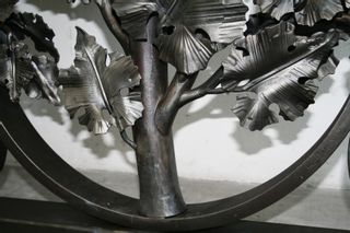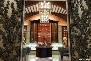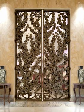 This wrought iron door is 4 meters high. The effort and the time spent on this work is undoubtedly significant: the details are so sophisticated and elegant. There are more than 700 hand-made grapevine’s leaves, forged one by one. At the end of the procedure, the iron is polished and brushed. These protective treatments enable the iron to be seen and touched in its natural state in addition to enhance the irregular surface typical of forging. Project by Alexkravetzdesign, performed by VilliZANINI's skilled artisans.