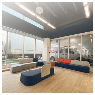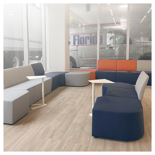 waiting area furnished with our IKEBANA collection, SIDE TABLE, UPPER stools