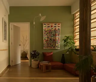 Our textiles and objects were used in the informal sitting area of an apartment.