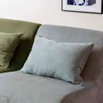 Notre Chauffeuse Pop en velours côtelé bleu ciel en photo dans le numéro juin - août 2025 du sublime magazine Maisons Côté Est ! La photo a été prise chez notre revendeur à Annecy.