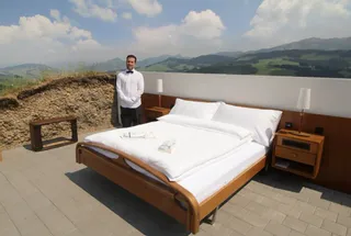 ‘My own special hotel in the Alps with no walls or roof’ Introducing Swiss Null Stern Hotel, existing only for you. ‘Your very own hotel Null Stern in the middle of Alps,’ told by Crown Goose, selected to present a special day to you. Interviewee / Frank Riklin Null Stern Hotel Conceptual artist of Null Stern Please briefly introduce Null Stern Hotel. Null Stern is the only hotel in the world located in the middle of the Alps (1970m above sea level). The biggest characteristic of Null Stern Hotel is that there are no walls, roofs, or bathrooms and that all there is are one queen-sized bed, a pair of tables, and a lamp. We heard that ‘Null Stern’ of Null Stern Hotel has a special meaning. Could you elaborate? ‘Null Stern’ means ‘zero stars’ in German. It means that ‘Our star is not the hotel but our customer, so we have removed the walls and left you and your experience.’ That’s why our slogan is ‘The only star is you.’ What was the motivation behind coming up with the idea for Null Stern Hotel? It was 2008 when we first came up with the idea for Null Stern Hotel. We conceived of the idea at the ‘nuclear bunker’ located in the town of Seblen in Switzerland. As artists, we have always aspired for art within daily life. We plan the artistic integration at unexpected places, away from art business spaces like galleries or museums. And the result of further progressing this idea is Null Stern Hotel. What is the biggest charm unique to Null Stern Hotel that differentiates it from other hotels? The secret behind Null Stern Hotel’s popularity is that it is perfectly suited to enjoy an unobstructed view because there is no wall or ceiling. Isn’t is very appealing, to be able to fully see and feel the beautiful scenery of Switzerland? Null Stern is meaningful in that it is not a hotel with less service and cheaper price, but that it redefines the meaning of luxury. This is a new category incomparable to any other existing 5-, 6-, or 7-star hotels. What was the reaction like when Null Stern Hotel, the only hotel in the world without any walls or roof, was introduced to the world? I still can’t forget the moment Null Stern Hotel was introduced to the world for the first time. We operated the Null Stern project we personally planned as 24-hour installation art and unveiled it to the media, and it was scintillating as if a little bomb had exploded. In just 4-5 hours, the message of the ‘first zero-stars hotel in the world’ spread throughout the world; I can say that it was the best moment in my life. We’re aware that two artists designed the hotel and one hotel expert manages it as partners. Is there any special reason for working together? Daniel Charbonnier used to work at Four Seasons Hotel Beverly Hills and came to us personally after seeing us in the media. I still can’t forget that moment. He came to us recognizing our possibility. He told us that ‘zero stars hotel is the future of the hotel industry,’ and from that moment on, we further advanced the concept of the zero stars hotel as partners. That is how our very own special hotel, ‘Null Stern Hotel,’ was born. What is the most precious thing you gained while planning Null Stern Hotel? We think that by personally planning and creating Null Stern Hotel, we gained a very special experience unattainable anywhere else in the world. The reason is that Null Stern Hotel was created purely from our very own imagination. We are happy that it was materialized in reality. How do customers use Null Stern Hotel? Null Stern Hotel is operated only under reservation, from spring to late autumn. If the weather is not good on a particular day, the reservation can be canceled. As our slogan is ‘The only star is you,’ we consider customers’ active participation as very important, and our ultimate goal is to present customers of Null Stern Hotel with the best view of the Alps so that they can enjoy the artistic values that we pursue. What are the values Null Stern Hotel is pursuing? We pursue the value of freedom, and our goal is to create a hotel that is centered around the customer. We will present our visitors with a new kind of freedom, creating a space and art that can become a new experience just by visiting.