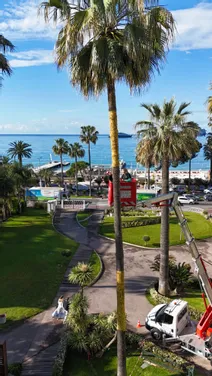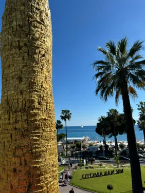 To celebrate the 70th anniversary of the Palme d'Or, Jean-Christophe Rousseau and his team covered the trunk of a 25-meter palm tree with over 10,000 sheets of 24-karat pure gold. This unique project was carried out over four days using a platform on the Croisette in the gardens of the Mondrian Hotel in Cannes. It's a world premiere, a technical and artistic feat, where we are inventing the gilding of the future.