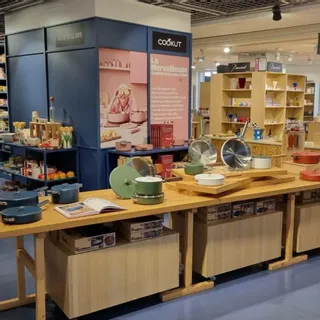 In-store merchandising of the Marvellous stainless steel collection, highlighting colour and material quality.