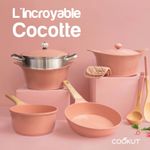 The Incredible range presented in-store, featuring the cocotte along with matching pans and saucepans, for a cohesive and easy-to-read retail offer.