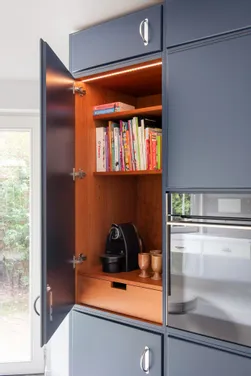 Just outside the city, this project began with an architectural challenge: transforming a compact footprint into a CUBEX kitchen with a sensorial yet assertive presence. The aim was to bring new energy to an Art Deco home by rethinking every square metre with precision, elegance and intelligence. Developed in close collaboration with an interior architect, the composition strikes a nuanced balance between statement and restraint. Custom deep-blue modules set the tone, while a marble worktop introduces a mineral, graphic and sophisticated accent. The transformation extends beyond the kitchen. Openings were reworked to draw in natural light and frame the garden, creating a fluid dialogue between inside and out. Circulation becomes calmer, and the living space is reorganised around a central, welcoming hub. A Parisian project that turns constraints into refinement, celebrating timeless aesthetics and an exacting sense of space.