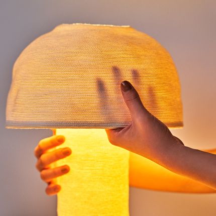 You can make adjustments to the light every day, by changing the shape of the base and the hue. The table lamps are sewn together with a single strand, from the base to the shade. Monobrin is a braid that was developed for these lamps. This braid, made of about 80% Japanese paper, has excellent transparency and maintains its shape so that it can be molded into a variety of shapes.