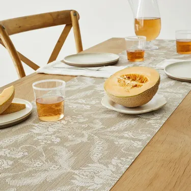 Created in collaboration with Martha Stewart, Rosette and Damask celebrate the art of jacquard weaving. Rosette captures the lushness of cabbage roses: each hand-drawn bloom reveals fine tonal nuances and subtle shading; its large-scale motif makes every placemat unique. Damask pays homage to classic damask, interlacing flowers and acanthus leaves in a symmetrical, tone-on-tone composition. Reversible, both designs offer two moods and a contemporary palette that’s easy to mix and match.Sizes: Rectangular placemat 36 × 48 cm; Table runner 36 × 183 cm.